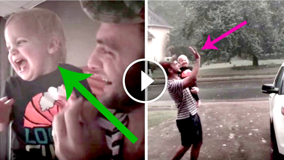 Preciosa Reacción De Bebé Al Sentir La Lluvia Sobre Él ¡Su Cara De Felicidad Lo Es Todo!