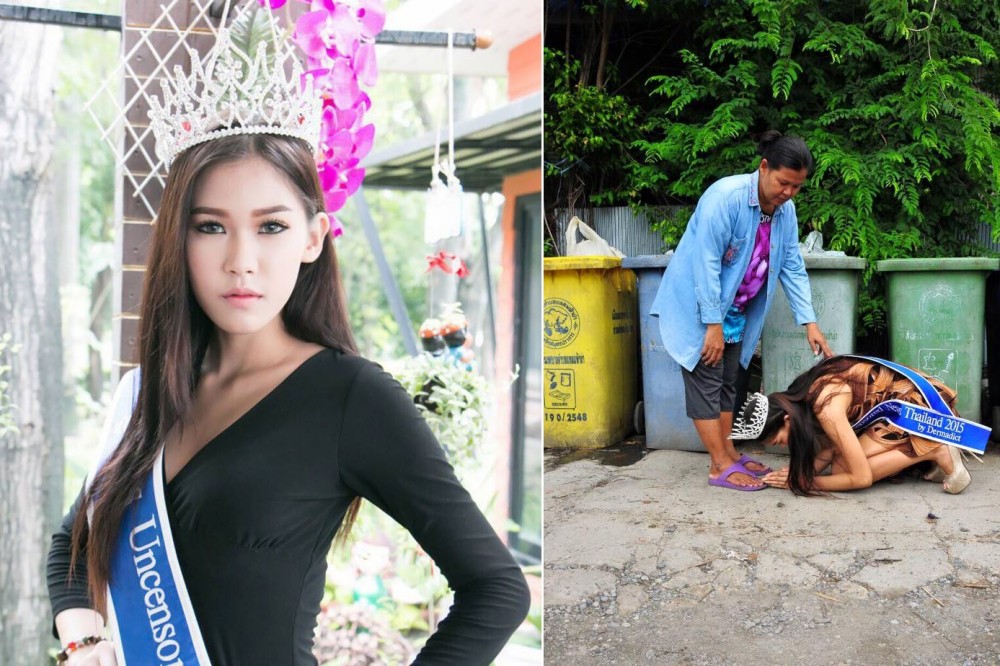 Miss Tailandia 2015 Recién Coronada Reverencia A Su Madre, Quien Recoge Basura Para Vivir