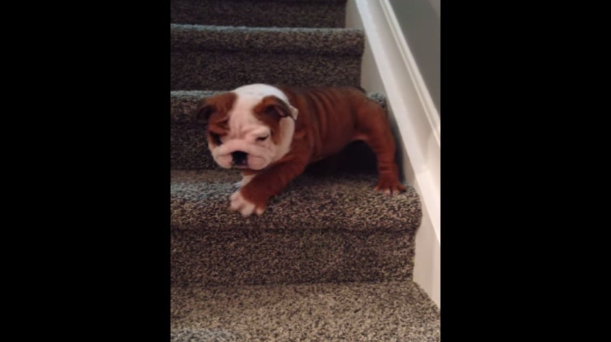 Este Pequeño Cachorro Parece Bebé Al Intentar Bajar Las Escaleras, Simplemente Adorable
